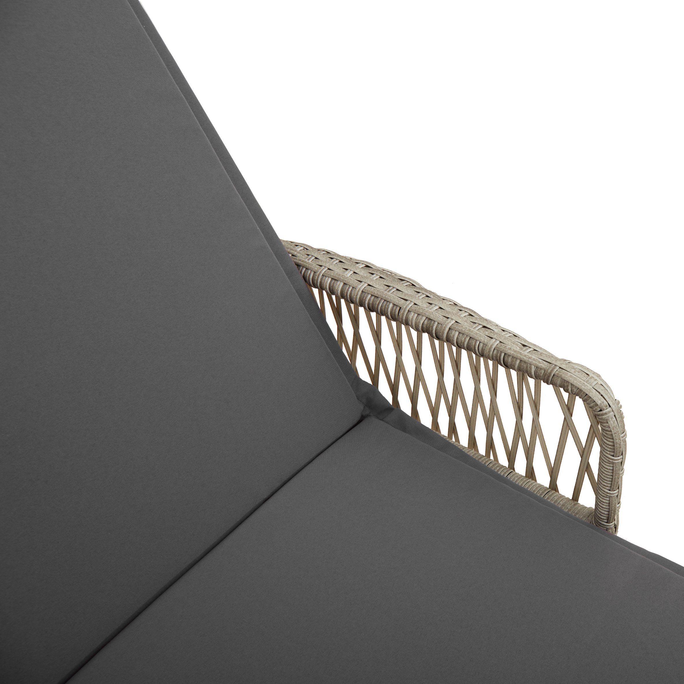 • Design Practic Picioarele rezistente din oțel îl fac să stea ferm pe orice tip de suprafață. Asta, combinată cu designul confortabil al șezlongului din ratan, garantează că te vei simți confortabil și practic, perfect pentru zile lungi în aer liber.