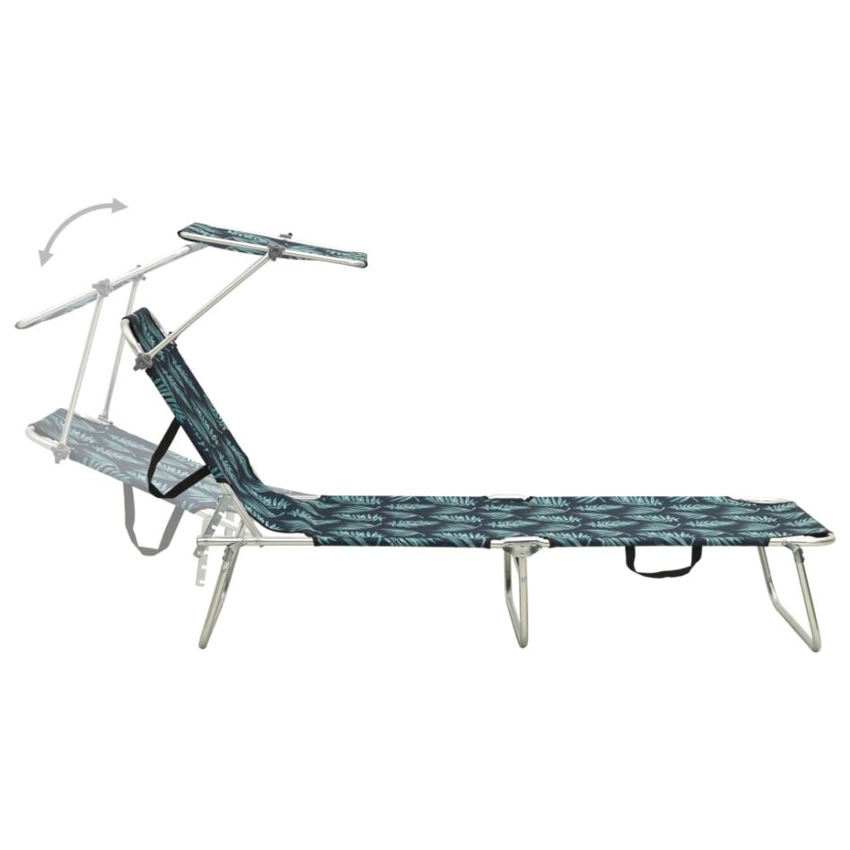 Șezlong pliabil cu copertină, imprimeu frunze, aluminiu