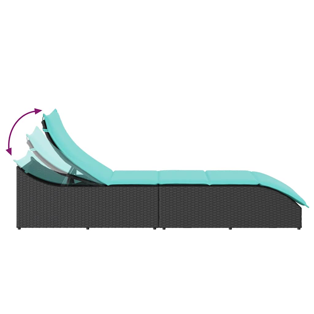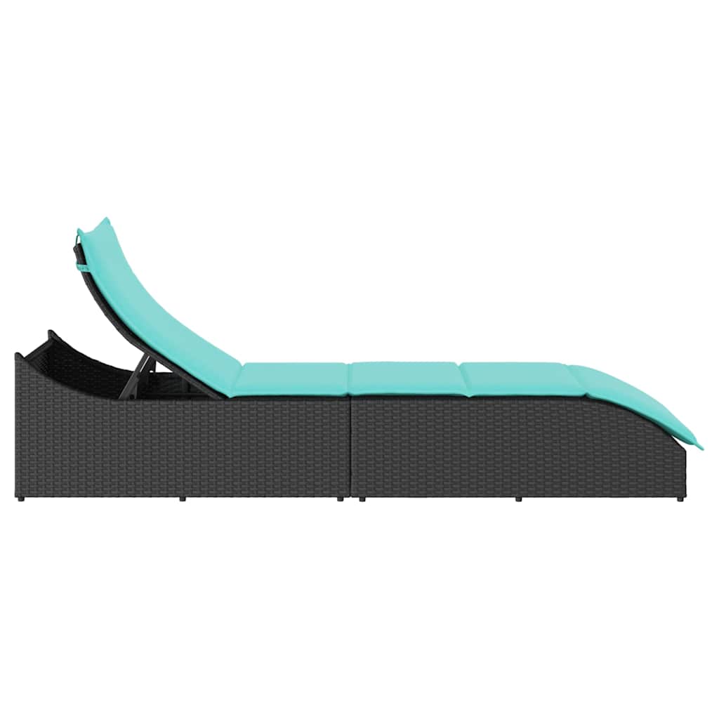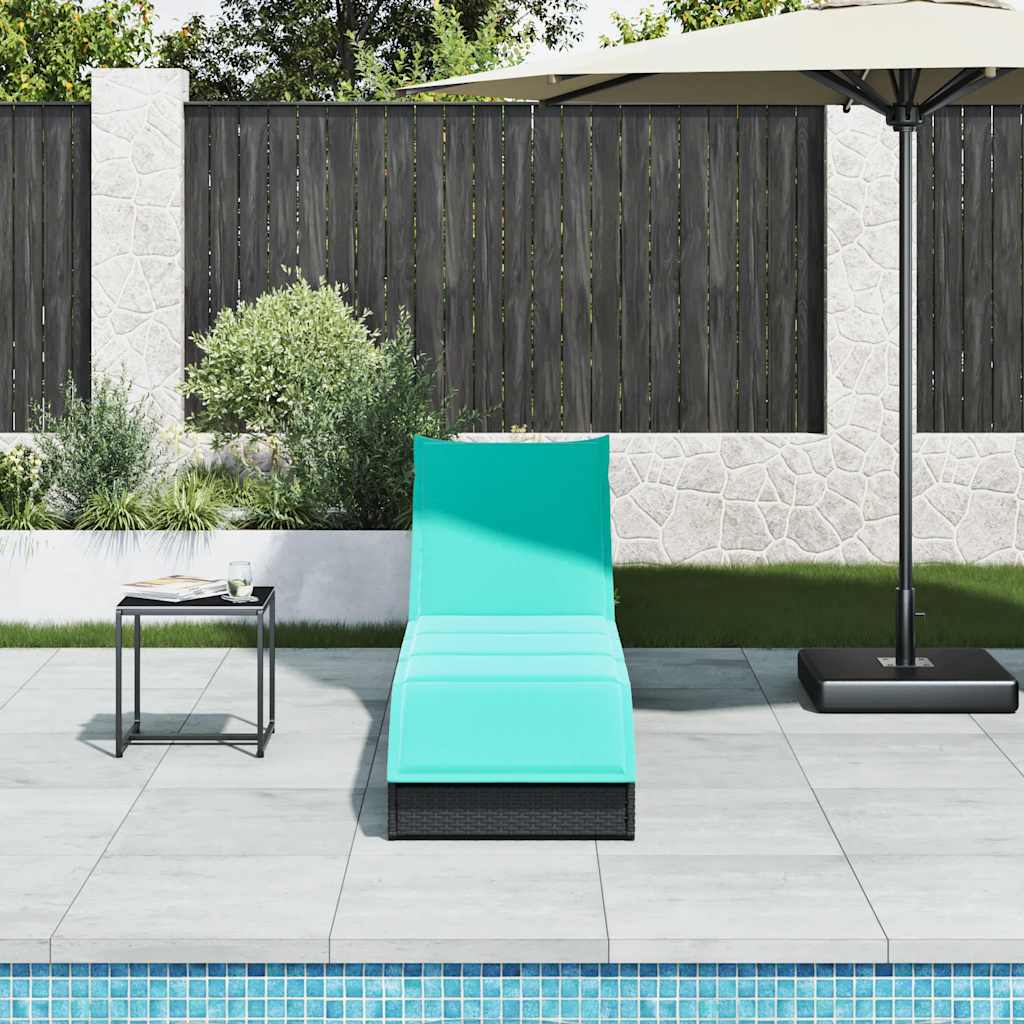 Șezlong pliabil cu pernă și depozitare din polirattan negru