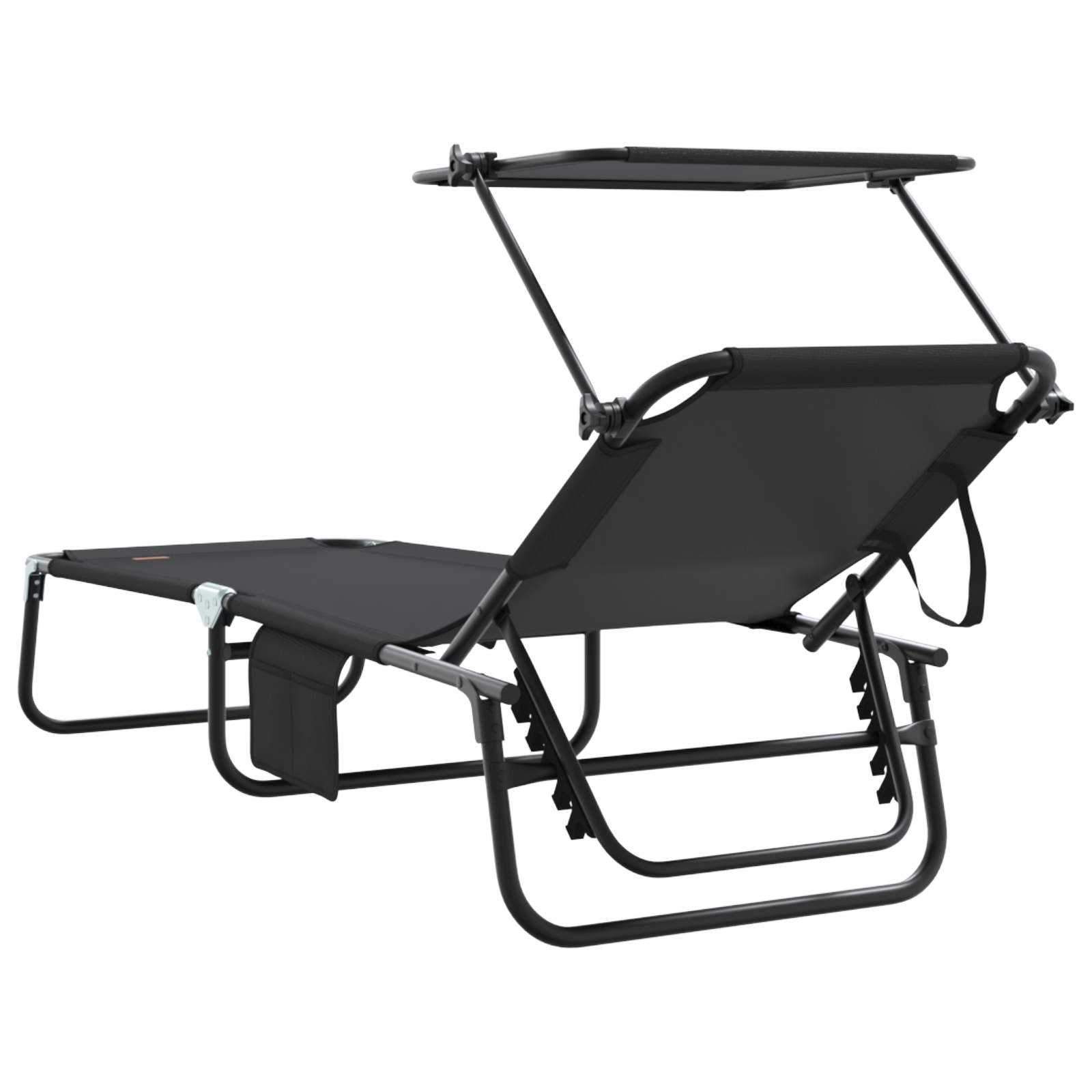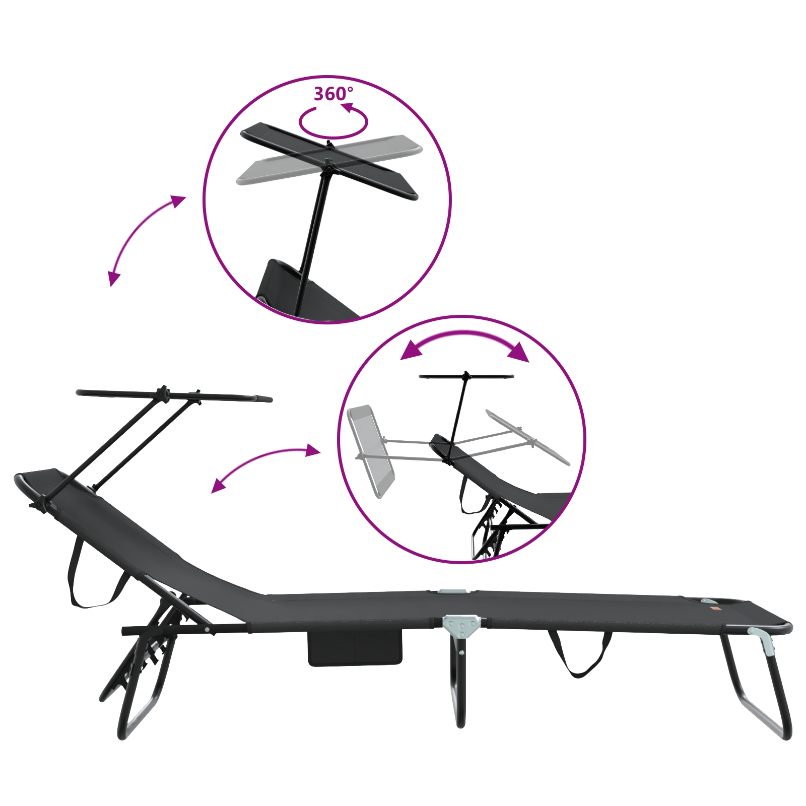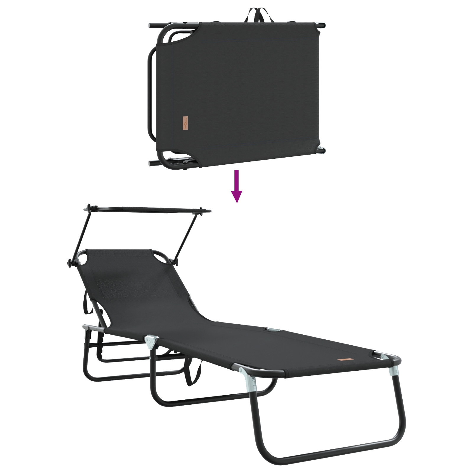 Șezlong pliabil cu pernă 2 pcs Negru 56 x 190 x 81cm țesătură