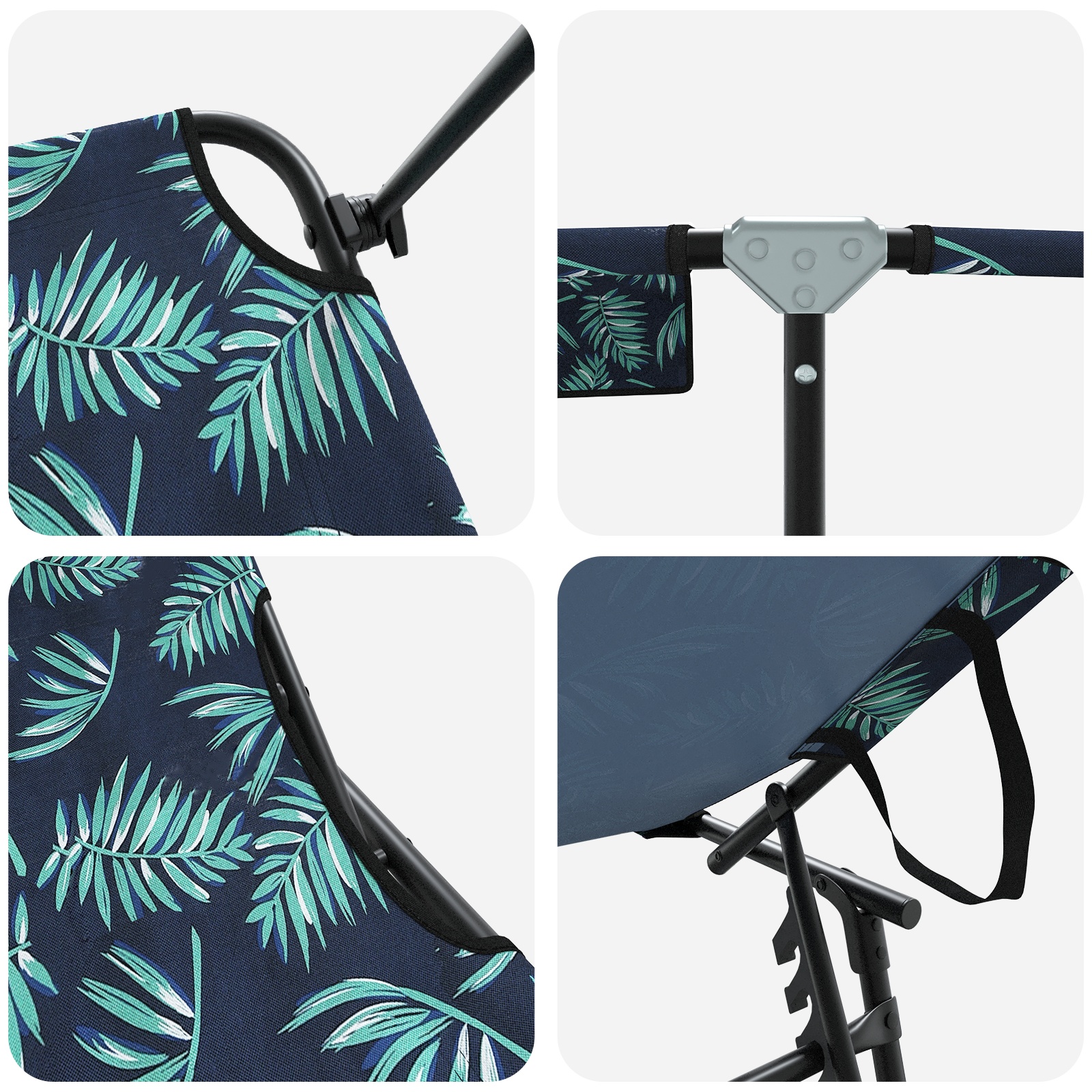• Construcție robustă din țesătură și metal E făcut dintr-o țesătură de calitate, moale, dar rezistentă. Cadru metalic îi oferă stabilitate și un look elegant, fiind perfect pentru exterior.
