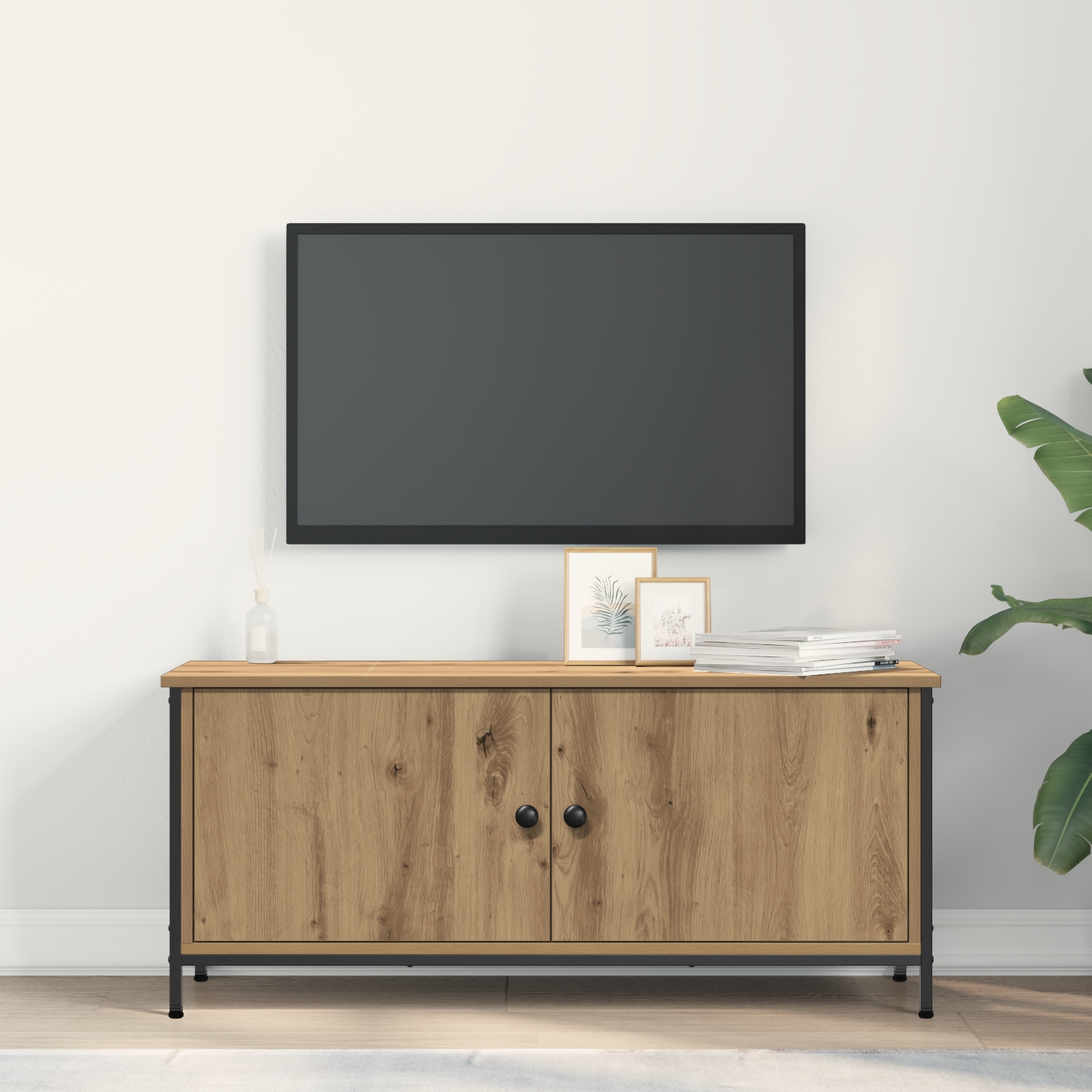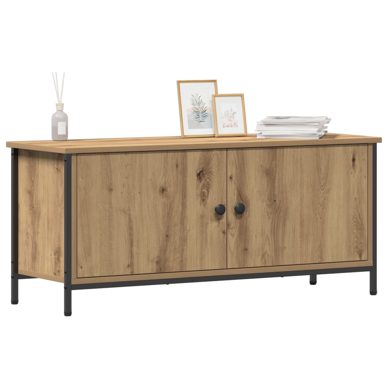 • Spațiu de stocare amplu Cabinetul îți oferă multe opțiuni de stocare, cu rafturi puternice din lemn prelucrat și uși cu balamale pentru acces ușor. Asta îți permite să-ți organizezi electronicele, cărțile și decorațiunile, adaptându-se nevoilor tale.