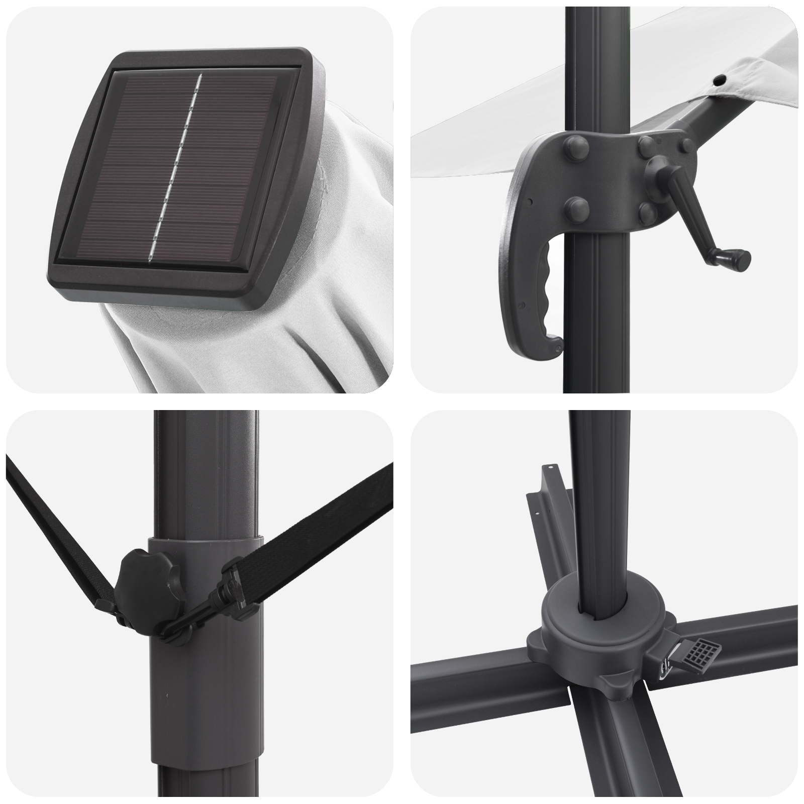 - Funcție de Rotație 360°: Parasolul se rotește ușor urmând soarele, menținându-te umbrit fără să trebuiască să muți mobilă. Ajustările sunt simple și line, așa că ești mereu ferit de soare.