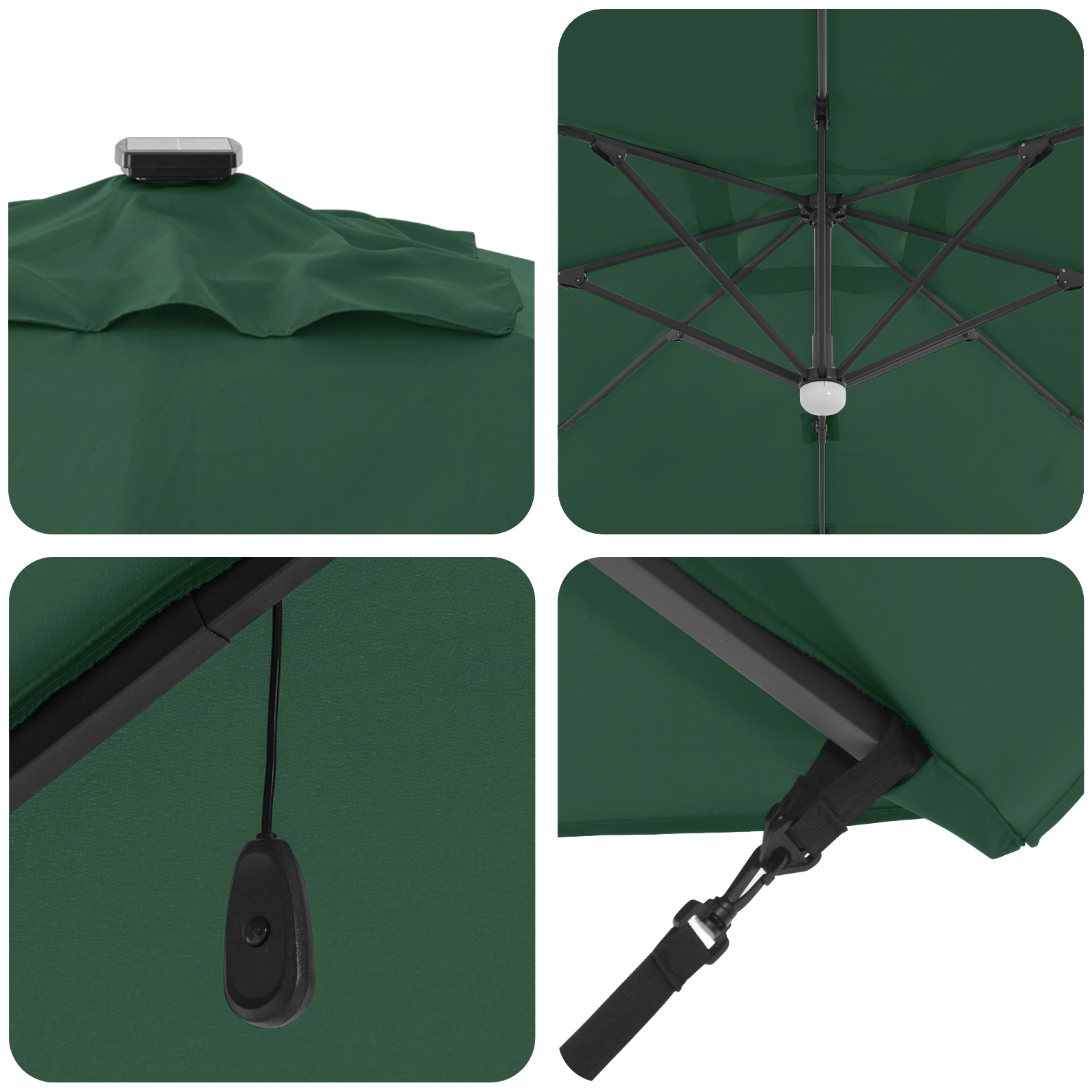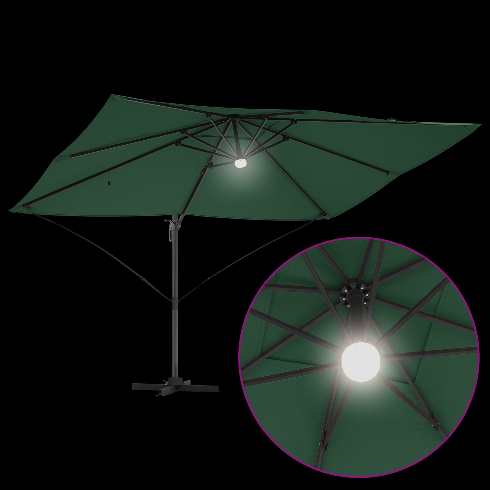 • Integrarea LED: Umbrela vine cu benzi LED care se montă ușor, creând o atmosferă plăcută pentru seratele tale. Aceste lumini sunt foarte utile după apus, adăugând o strălucire caldă întâlnirilor tale.
