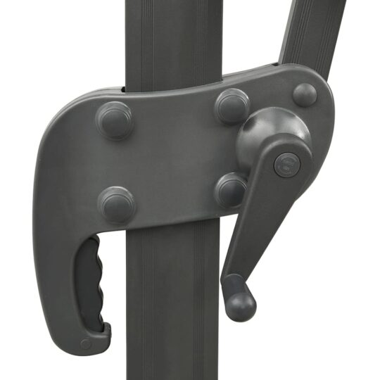 Fabricată din poliester cu protecție UV și anti-decolorare, copertina umbrelei de soare vă oferă o protecție optimă împotriva soarelui și este ușor de curățat. Are o bază solidă încrucișată, pentru un plus de stabilitate. Designul exclusiv al acestei umbrele de soare vă permite să înclinați și să rotiți umbrela la 360 de grade pentru a bloca soarele. Stâlpul robust din aluminiu, împreună cu cele 8 spițe, asigură stabilitate și durabilitate umbrelei de soare. Umbrela de grădină poate fi deschisă și închisă cu ușurință datorită mecanismului cu manivelă. În plus, modelul de copertină dublă facilitează ventilația.
