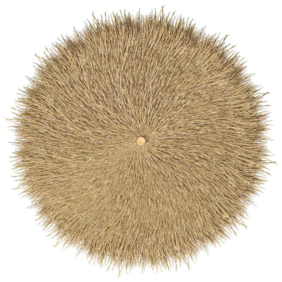 • Baldachinul umbrelei este țesut manual pentru a oferi umbră parțială, dar nu blochează 100% din lumina soarelui.