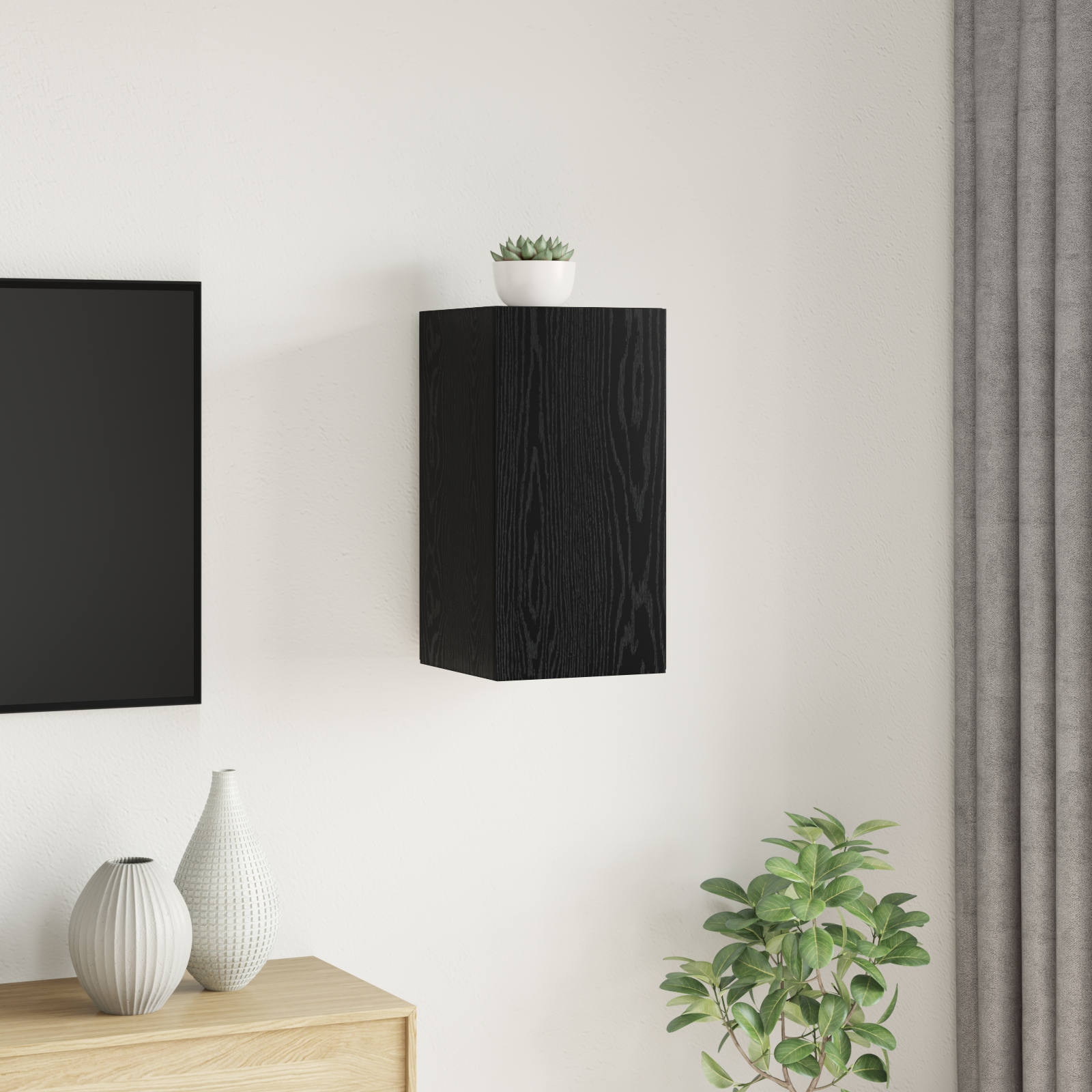 Dulapul pentru TV de perete e mixul perfect de design stylish și utilitate practică pentru livingul tău. Cu niște linii clare și fără fasoane, se integrează perfect în orice spațiu modern. Imaginează-ți un loc elegant pentru toate echipamentele tale media unde stilul și funcționalitatea se completează reciproc. Acest dulap transformă zona ta de entertainment într-un setup ordonat, ideal pentru oricine prețuiește ordinea și aspectul plăcut.