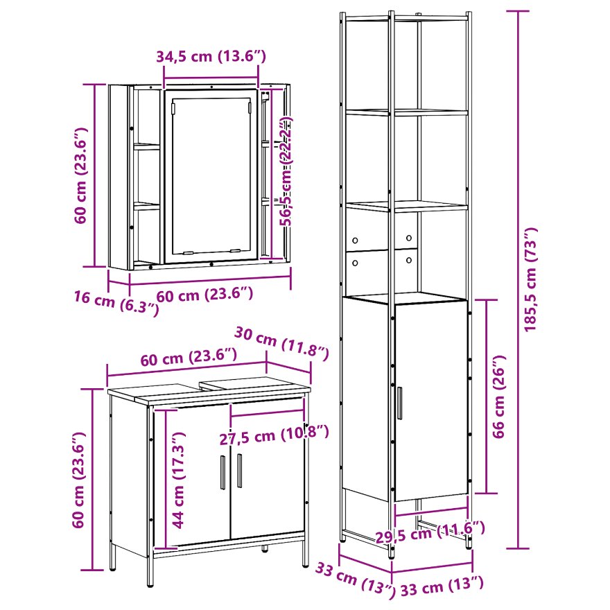 Unități de vanitate pentru baie 3 pcs Maro 33 x 33 x 185.5 cm