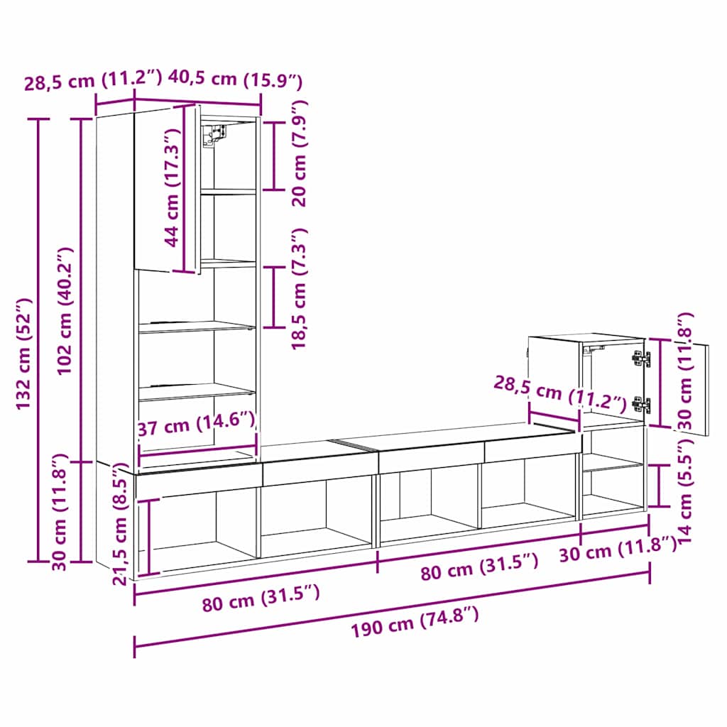 Această unitate de perete pentru TV cu 4 piese îmbină estetica modernă cu funcționalitatea, devenind punctul de interes în orice cameră de zi. Cu un design dreptunghiular elegant, e creată să organizeze și simplifice spațiul tău de divertisment, oferindu-ți o soluție stylish pentru multimedia și obiecte decorative.