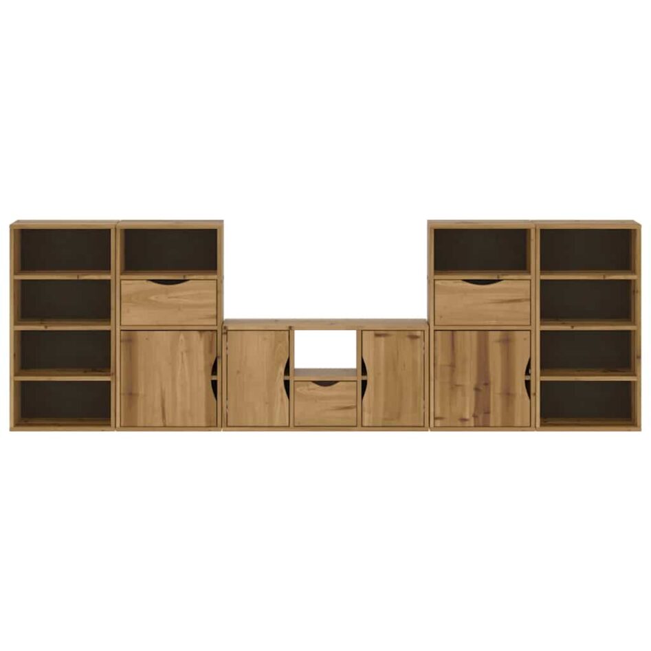 Unități TV 5 piese cu depozitare „ODDA” din lemn masiv de pin