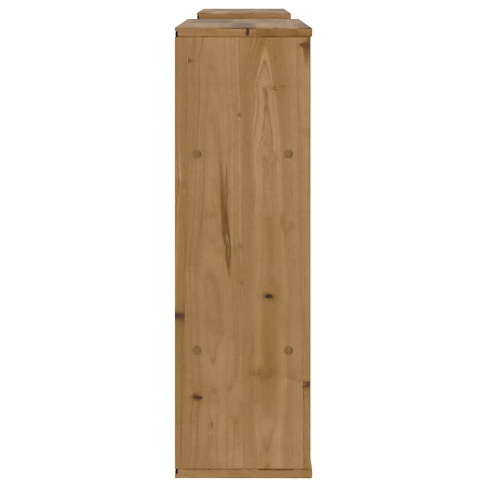 - Material: Lemn masiv de pin finisat cu ceară de culoarea mierii, lemn prelucrat