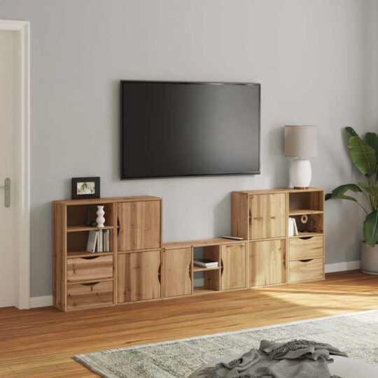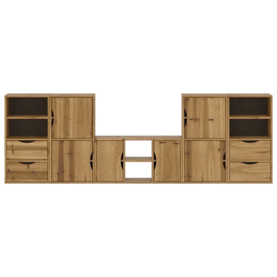 Unități TV 5 piese cu depozitare „ODDA” din lemn masiv de pin
