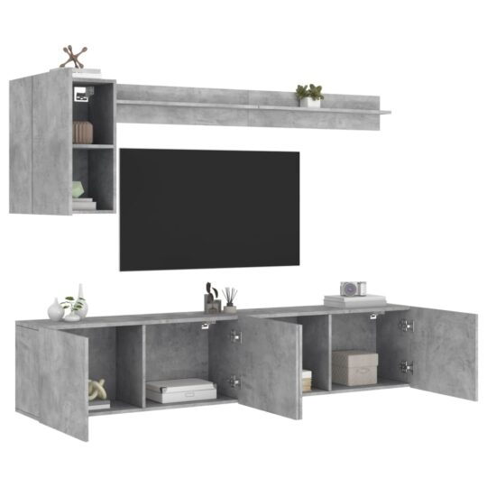Unități TV de perete, 5 piese, gri beton, lemn prelucrat