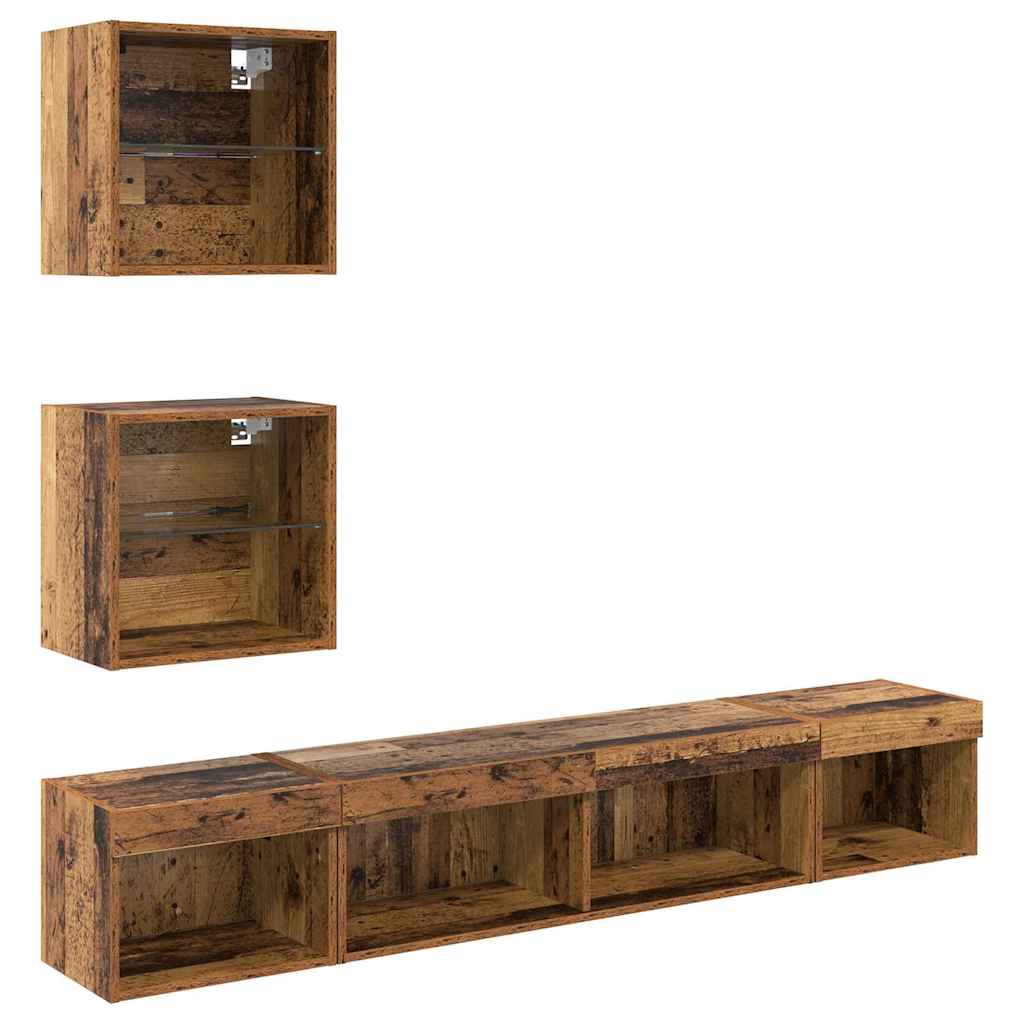 Unități TV de perete cu LED 5 pcs Lemn vechi 100 x 30 x 30 cm