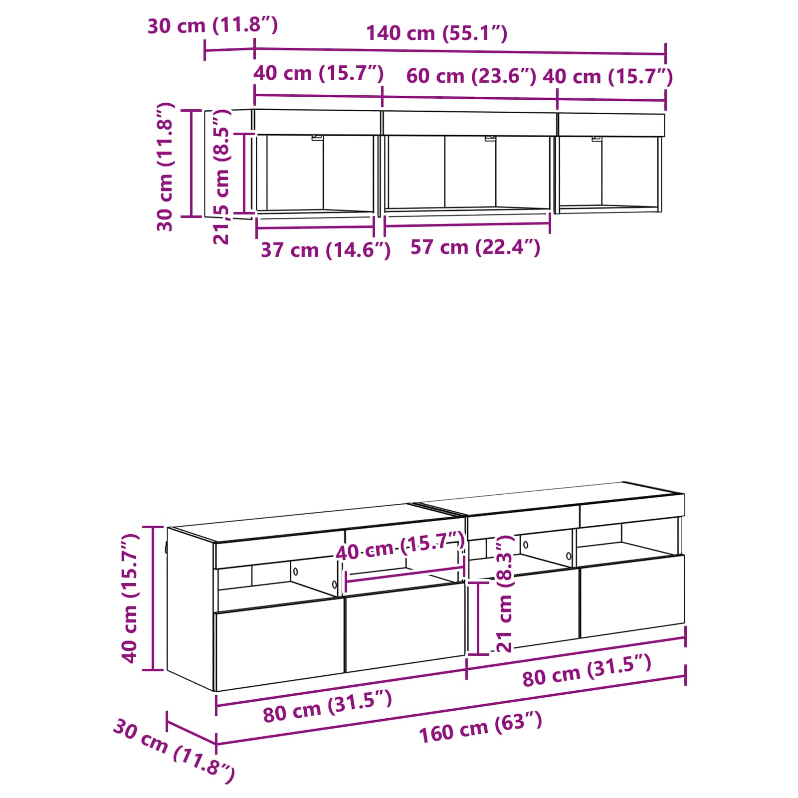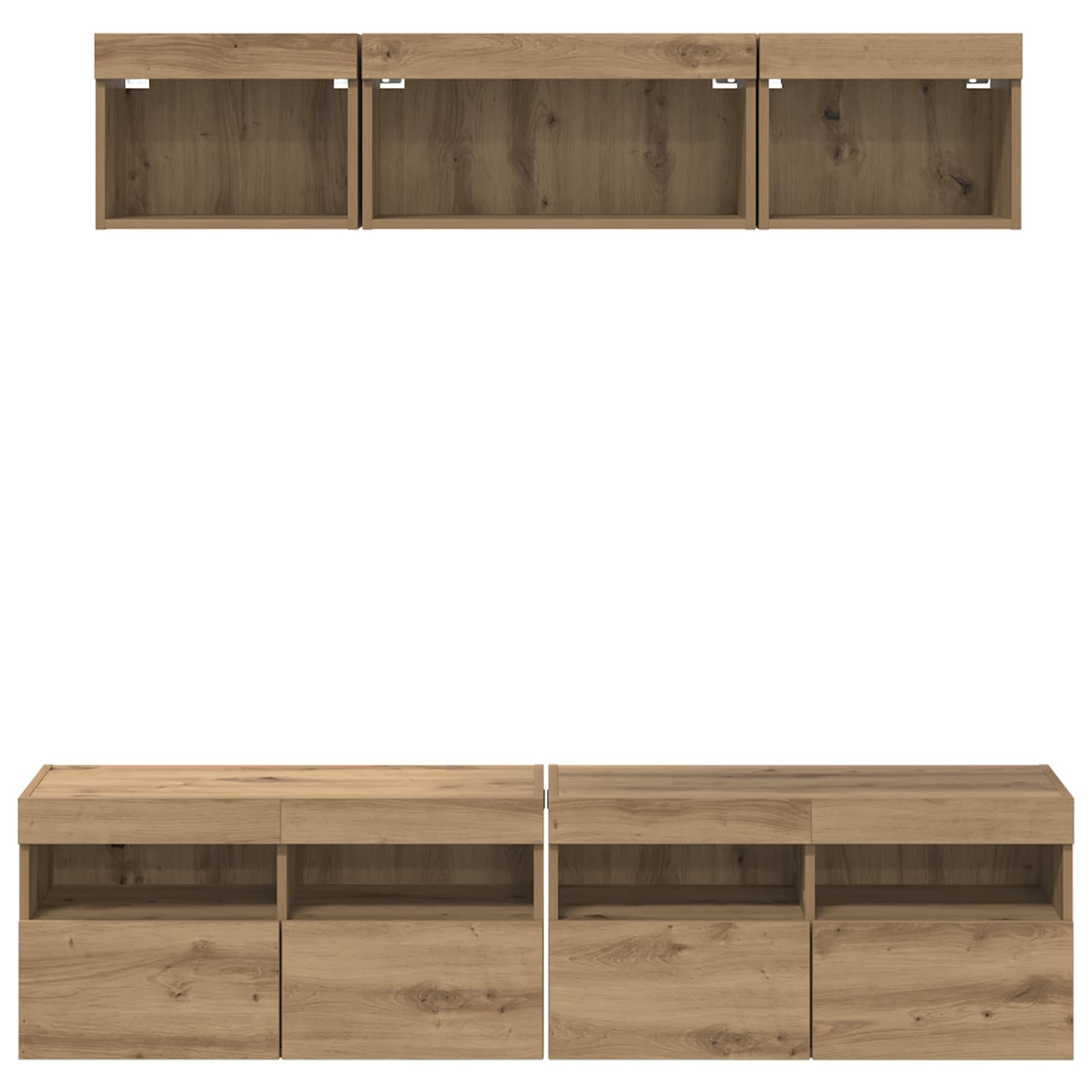 Unități TV de perete cu LED 5 pcs Stejar Artizanal 80 x 30 x 40 cm